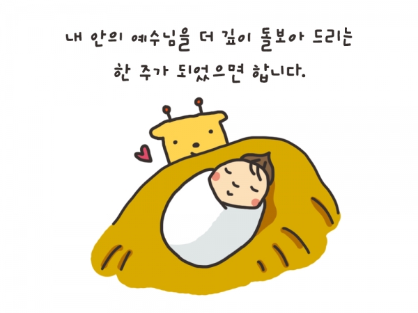 새싹 작가님의 예쁜 아기가 밝고 건강하게 자라나길 소망하구요. ^^ 내 안의 예수님을 잘 돌보아드리는 한 주 보내면서 승리할게요~