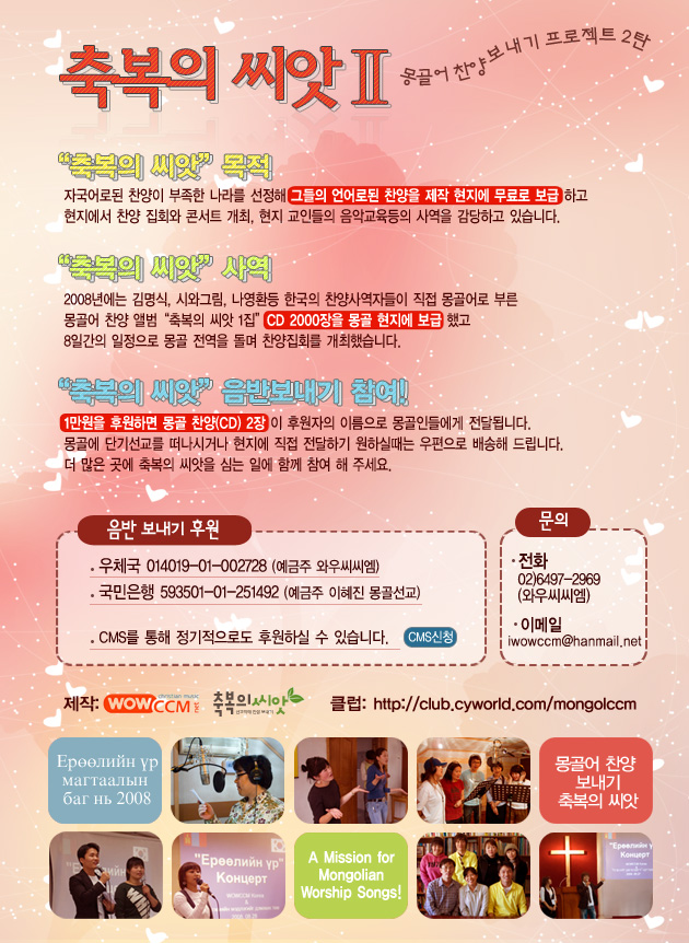 136-853 서울특별시 성북구 정릉3동 746번지 M층 기독교인터넷방송국 와우씨씨엠 대표전화 : 02)6497-2969 |