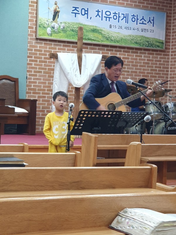 ​저희 교회 담임목사님과 제 아들이 수요예배 시간에 준비찬양을
